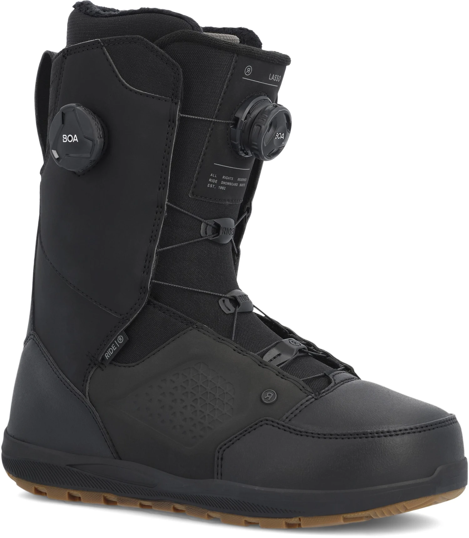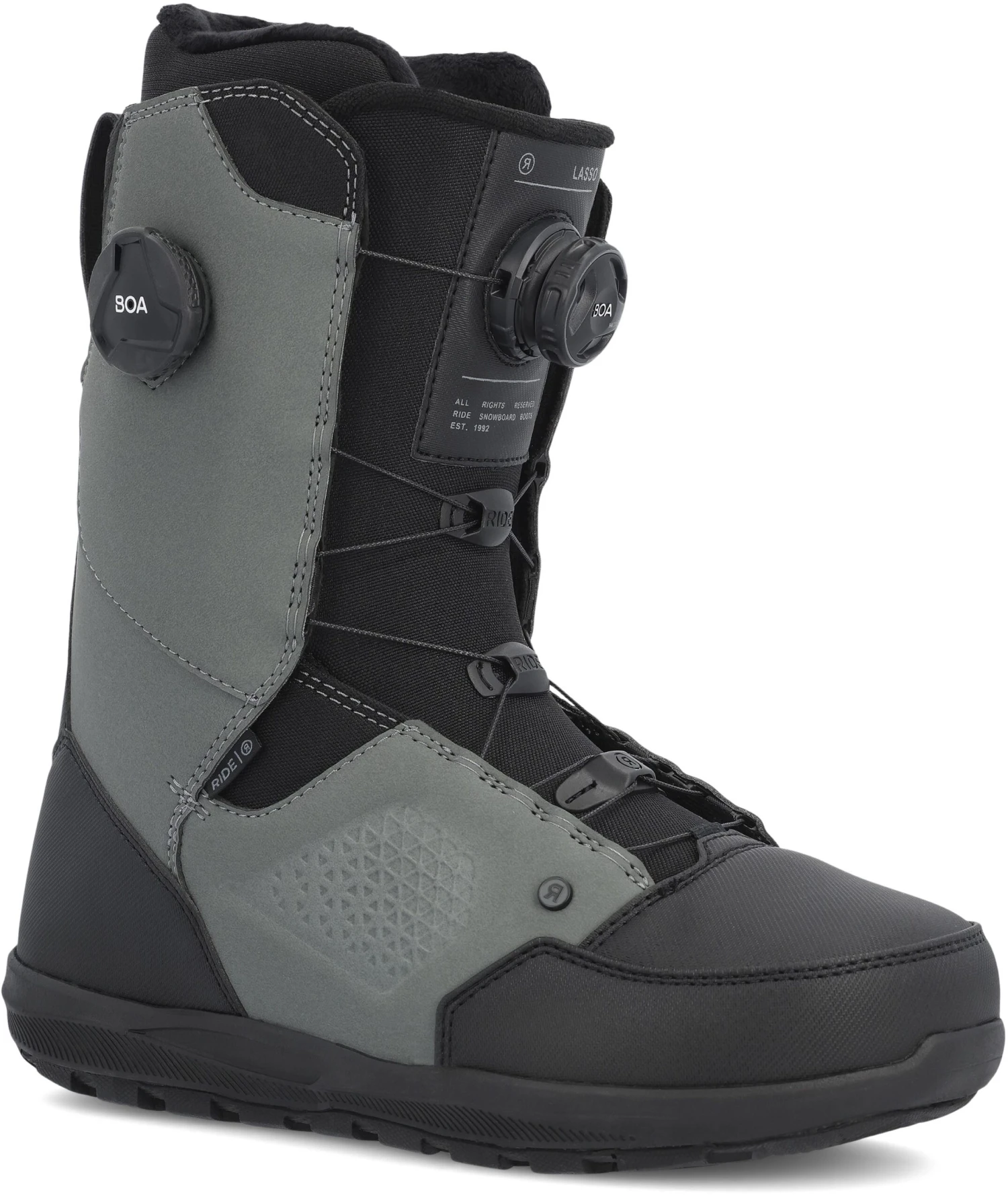 HDR PREMIUM SYNTHETICS: RIDE’s Premium PU material utilizes a proprietary resin that substantially improves durability and wear resistance. Used in high abrasion zones where bindings and board edges create focused wear, RIDE’s Premium PU has unmatched performance.